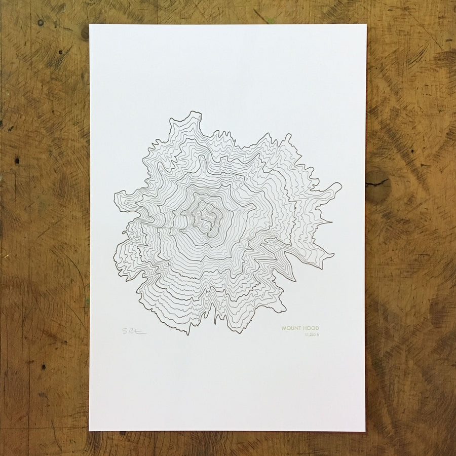 Mount Hood Topographic Map Letterpress Print โ Green Bird Press