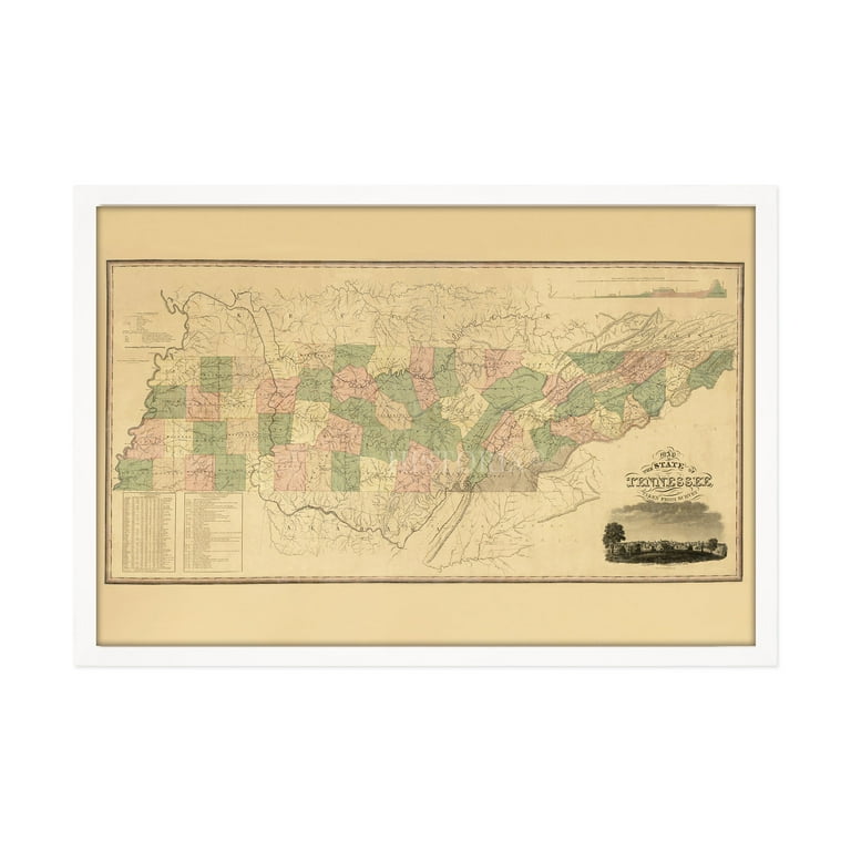 1832 Tennessee State Map Framed Vintage Tennessee Wall Art